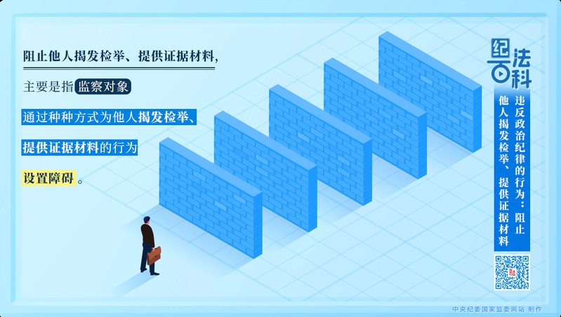 阻止他人揭发检举、提供证据材料,主要是指监察对象通过种种方式为他人揭发检举、提供证据材料的行为设置障碍。