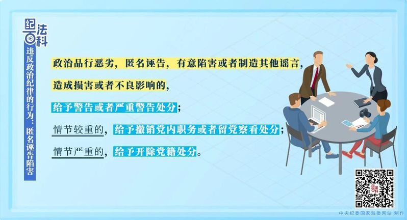 《关于新形势下党内政治生活的若干准则》规定,“严肃追查处理诬告陷害行为”,“党员、干部反映他人的问题,应该出于党性,通过党内正常渠道实名进行,不准散布小道消息,不准散发匿名信,不准诬告陷害等。”(引自:山东省纪委监委网站)