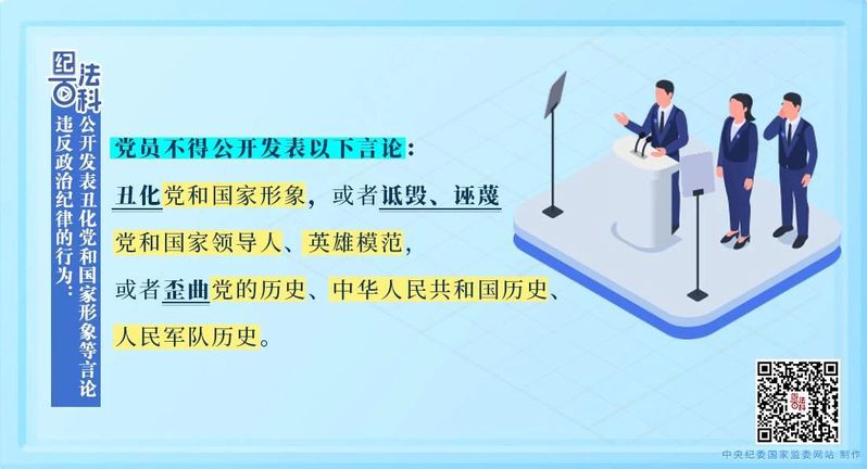 《关于新形势下党内政治生活的若干准则》规定,“对歪曲、丑化、否定党的历史、中华人民共和国历史、人民军队历史的言行,对歪曲、丑化、否定党的领袖和英雄模范的言行,对一切违背、歪曲、否定党的基本路线的言行,必须旗帜鲜明反对和抵制”。