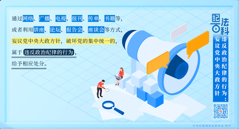 执纪监督中发现,有的党员、干部“当面不说、背后乱说”“会上不说、会后乱说”“台上不说、台下乱说”,对党中央大政方针说三道四。这些言论扰乱党员、干部思想,破坏党的团结统一,妨碍党中央大政方针的贯彻落实,必须依规依纪严肃处理。(引自:山东省纪委监委网站)