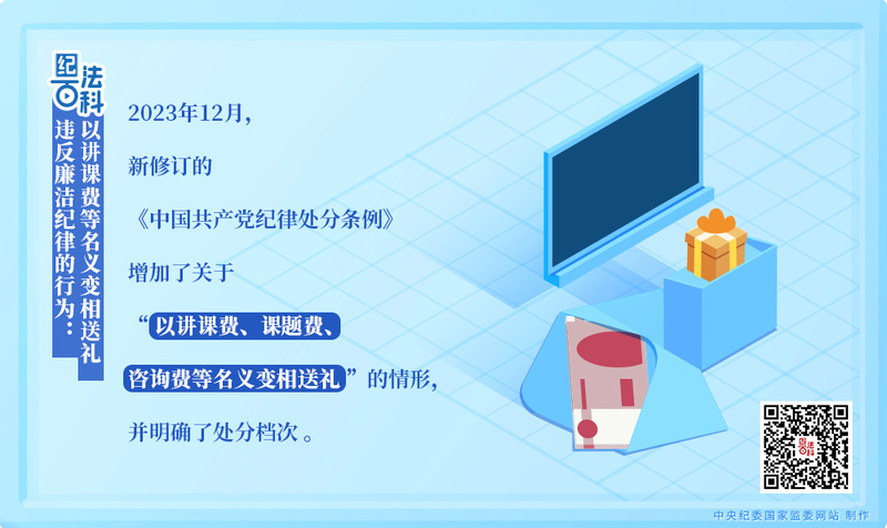 执纪监督中发现,现在送礼的手段升级、花样翻新,隐形变异行为潜滋暗长,其中以讲课费、课题费、咨询费名义变相送礼、拉关系的比较典型。除此以外,也存在其他变相送礼的情形,因此本款还规定了“等名义”,以涵盖更为周延本条规制的是违规送礼,但“送”和“收”存在对应关系,对于以讲课费、课题费、咨询费等名义变相收礼的,也要给予相应处分。